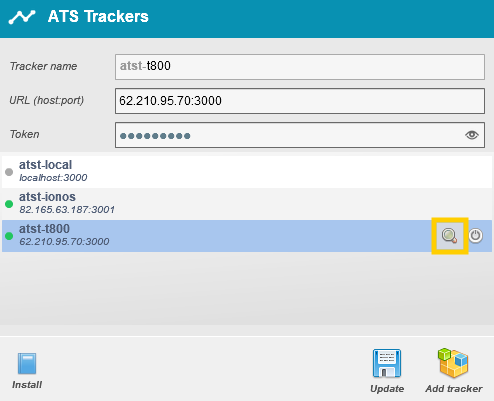 To open the tracker console you can click on the magnifying glass icon on the corresponding tracker you want to open.