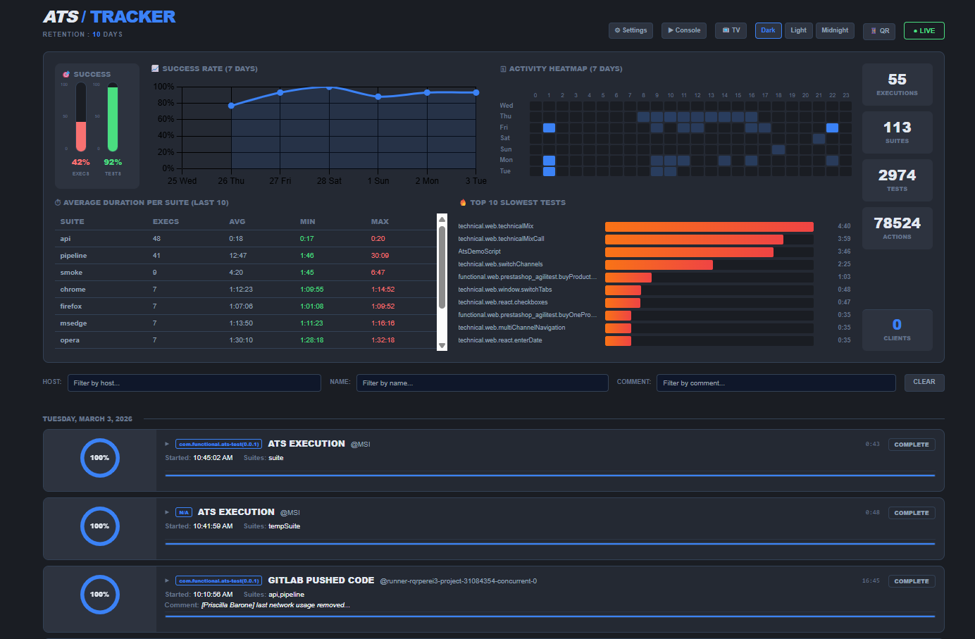 The Dashboard is generated automatically at the end of each execution.