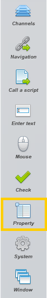 The Property action is used to retrieve the value of an attribute or property from a captured graphical element and store it in a variable. Unlike a validation (assertion), this action does not stop the test if the value is unexpected; its sole purpose is to "read" the information.