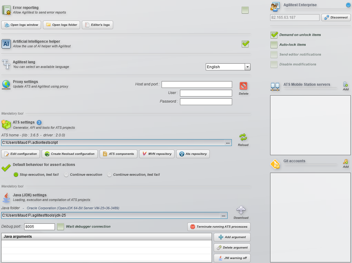 Agilitest settings