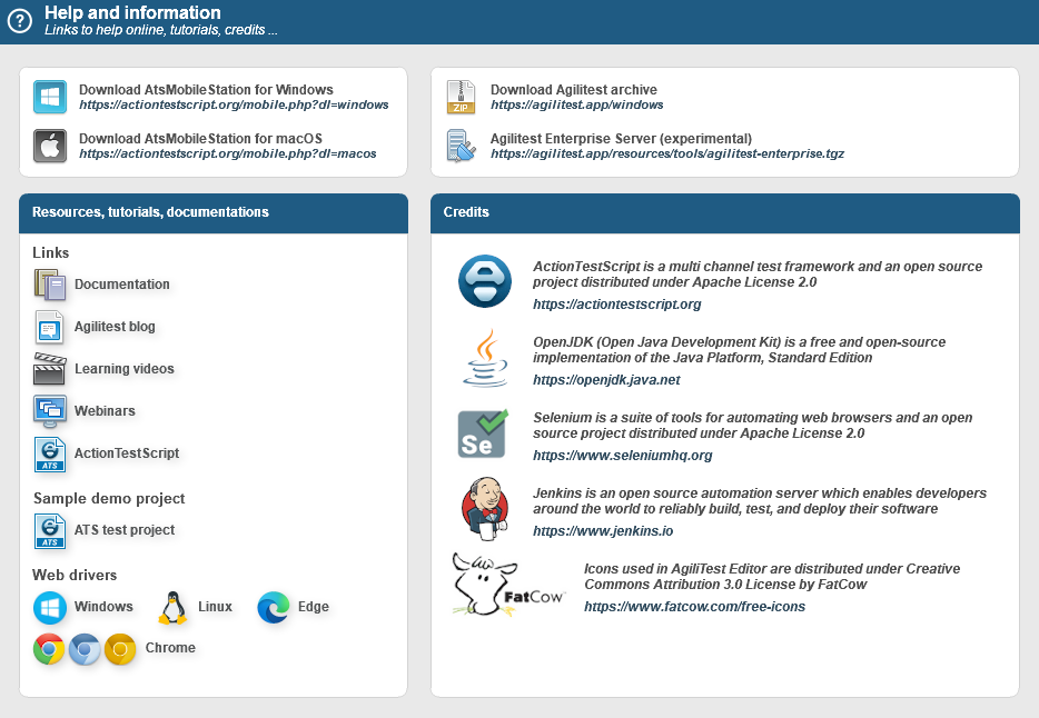 - Various resources to support your path on Agilitest (documentation, videos, webdrivers, etc…)