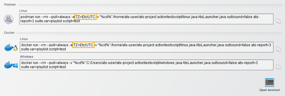 - When launching an execution with a Docker image, you can define the time zone of the test execution